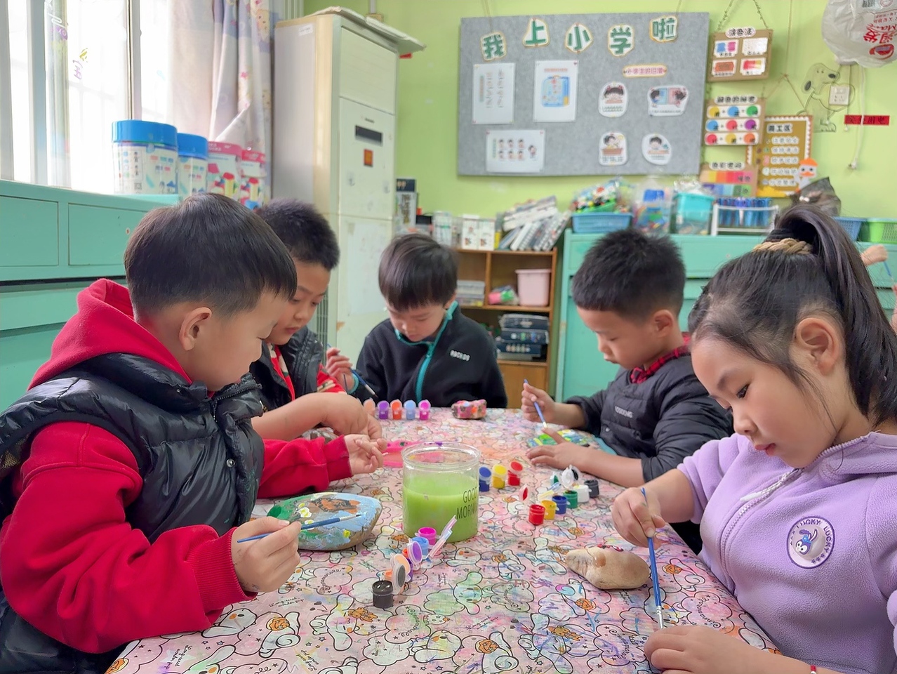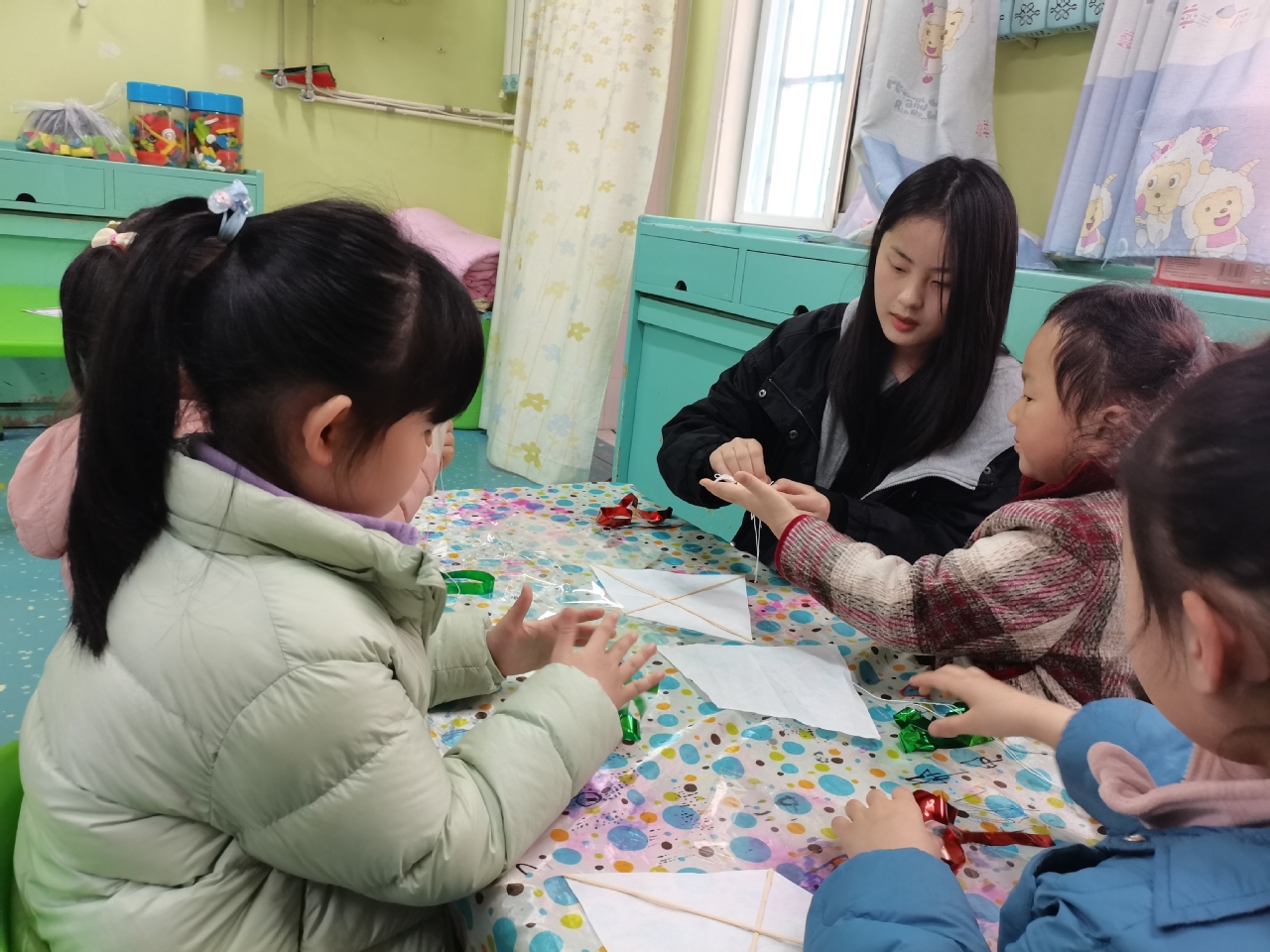大学生们分成五组,每个班级由一组大学生带领进行创意美术活动。大学生们青春活力,创意无限;小朋友们天真可爱,奇思妙想。每一个班级的活动氛围都非常热烈、和谐。小小班和小班的小宝贝们在大哥哥大姐姐的耐心引领下,用自己稚嫩的小手把一团团彩色黏土变成了一幅幅充满童趣的画。中班的小朋友积极、大胆尝试,和大哥哥大姐姐一起制作了一幅幅甜甜蜜蜜、漂漂亮亮的糖画。大一班的小朋友们选材奇特,把画画在了石头上,在大哥哥大姐姐的引导下让精美的图案跃然石上,让每一颗石头都变得鲜活灵动。大二班的小朋友更是和大哥哥大姐姐一起,动手为自己精心制作了精美别致的风筝,期待在这个美好的春天放飞梦想。