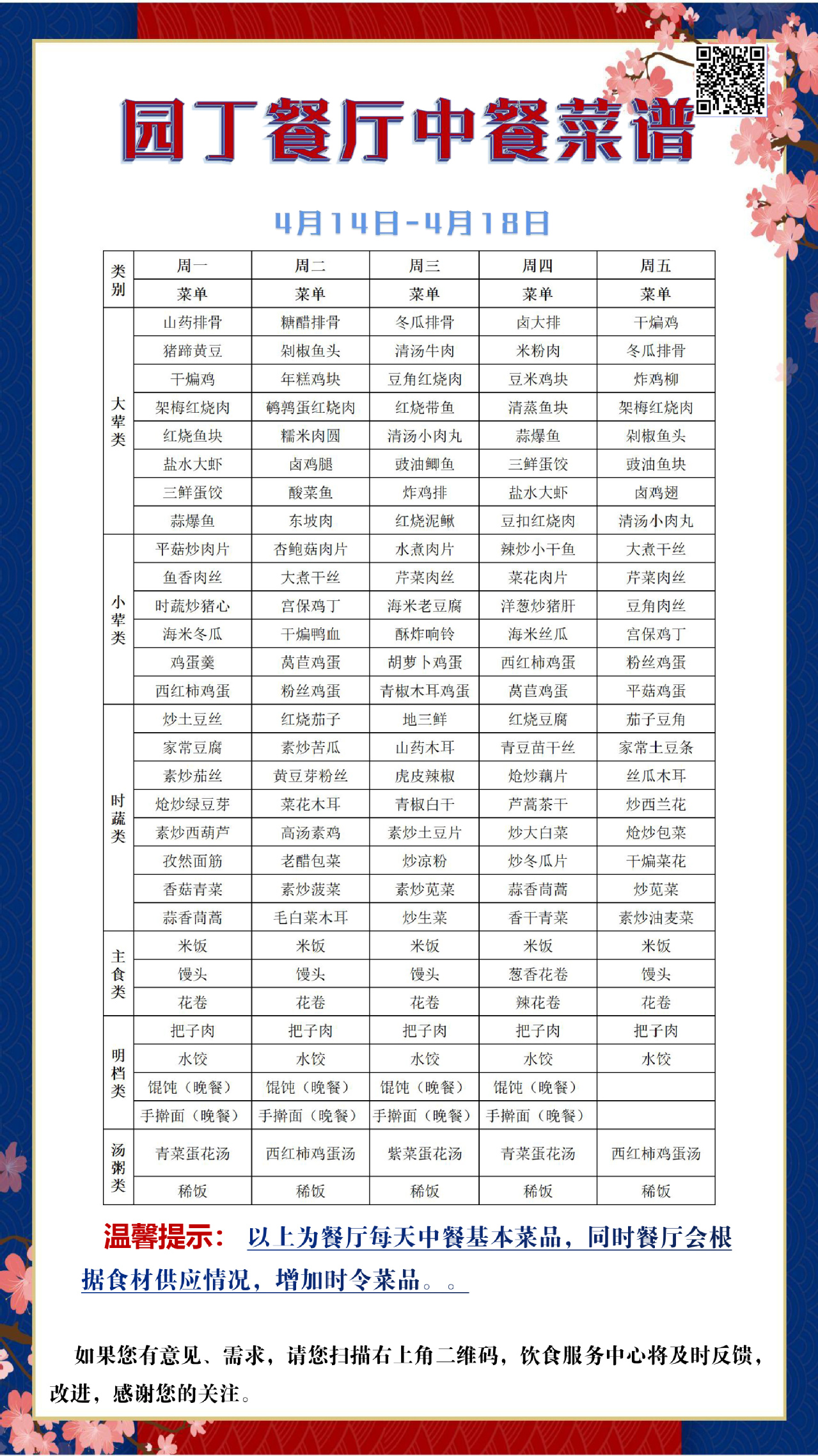 根据大数据分析,餐厅11:25-11:35、11:45-11:50、12:00-12:05三个时间段为就餐高峰期,为了减少排队等待时间,老师们可以选择错峰就餐。餐厅所有食材当天购买、当天使用,菜品新鲜,安全卫生。