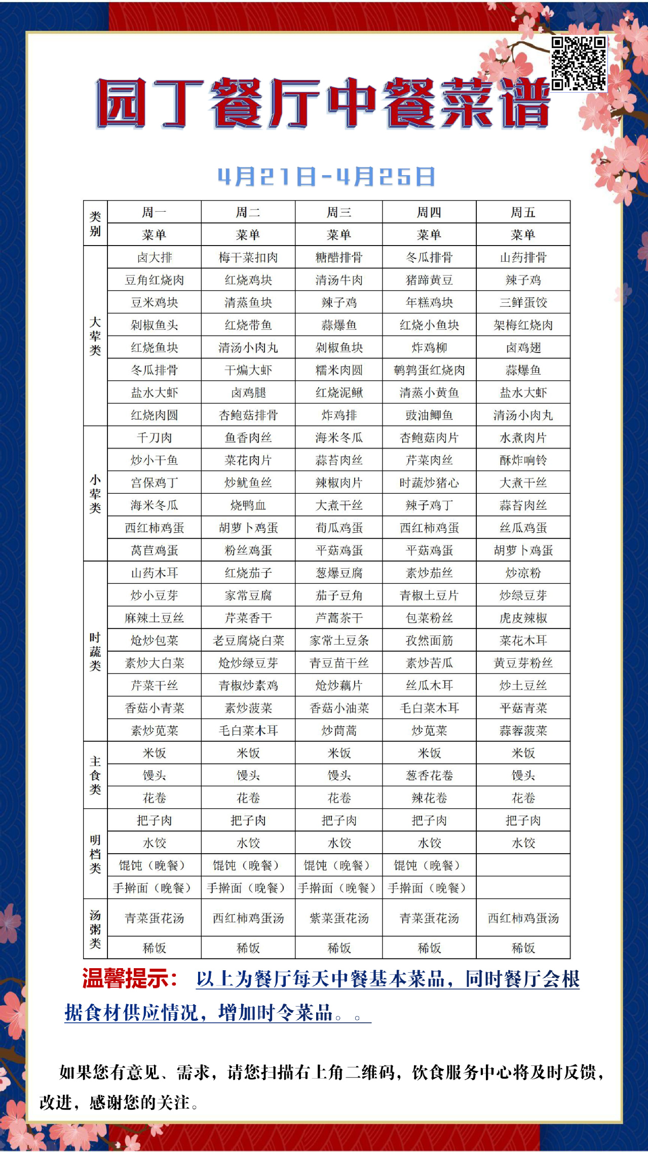 根据大数据分析,餐厅11:25-11:35、11:45-11:50、12:00-12:05三个时间段为就餐高峰期,为了减少排队等待时间,老师们可以选择错峰就餐。餐厅所有食材当天购买、当天使用,菜品新鲜,安全卫生。