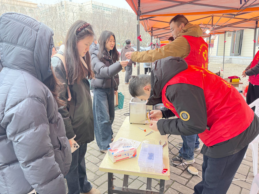 清洗眼镜服务点前同样排起了小长队,工作人员借助专业的超声波清洗机,为师生们仔细清洗眼镜镜片与镜架,同时耐心调整镜架松紧、修复轻微变形,经过专业的清洁与修整,原本蒙尘的眼镜重现透亮光泽,师生们戴上清晰的眼镜,脸上都露出了满意的笑容。健康义诊服务点里,志愿者们一边为师生免费测量血压、检测血型,一边结合季节特点和校园生活习惯,为大家讲解日常养生、血压管控、用眼护眼等实用健康小常识,细致的解答和贴心的提醒,让师生们收获满满。