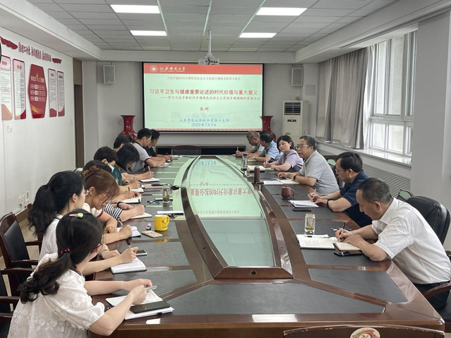 73午,机关党委第七支部在西教5号楼会议室开展了专题党课学习活动。根据机关七支部“学习贯彻习近平新时代中国特色社会主义思想主题教育”学习计划,卫健办张辉主任分享了以《习近平卫生与健康重要论述的时代价值与重大意义》为题的学习体会,支部书记张欣处长主持了本次支部党课并作了总结发言。